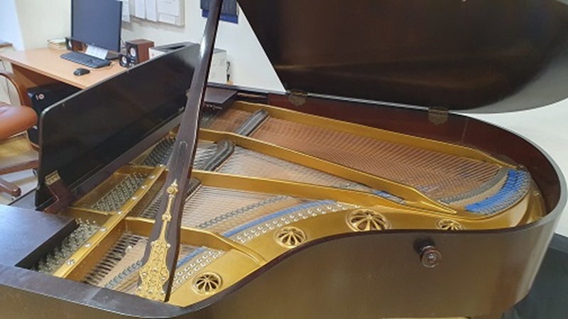 Repas mechaniky (nová kladívka s násadkami, výměna plstí, nový potah bílých kláves, celková regulace vč. seřízení vůlí, seřízení dusítkového a pedalizačního mechanizmu)